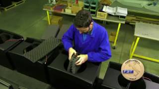 Subwoofer in bass-reflex con cabinet in multistrato di betulla impilabile. Maniglia in pressofusione di alluminio con inserti in gomma. Supporto M20 per apposito palo di sostegno del satellite composto da 3 moduli avvitati uno sull’altro. Il sistema di sostegno del satellite permette di avere altezza modulabile ed uno snodo ne consente l’inclinazione verticale.