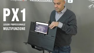 Bespeco PX1 è un leggio multifunzione pieghevole concepito per garantire stabilità in ogni suo utilizzo e posizione. La tavola, estraibile e pieghevole, è realizzata in ABS flessibile antiurto, in modo da prevenire rotture dovute a cadute accidentali; lo snodo che regola l'inclinazione è composto dal sistema "CROCODILE" a ruote dentate per un serraggio e una tenuta ottimale in ogni posizione.